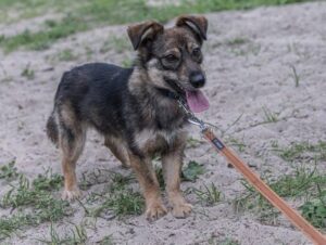 Nasz Pty艣 to m艂ody, roczny, radosny “ch艂opak”, kt贸ry wychowa艂 si臋 w hoteliku w艣r贸d psiak贸w.
